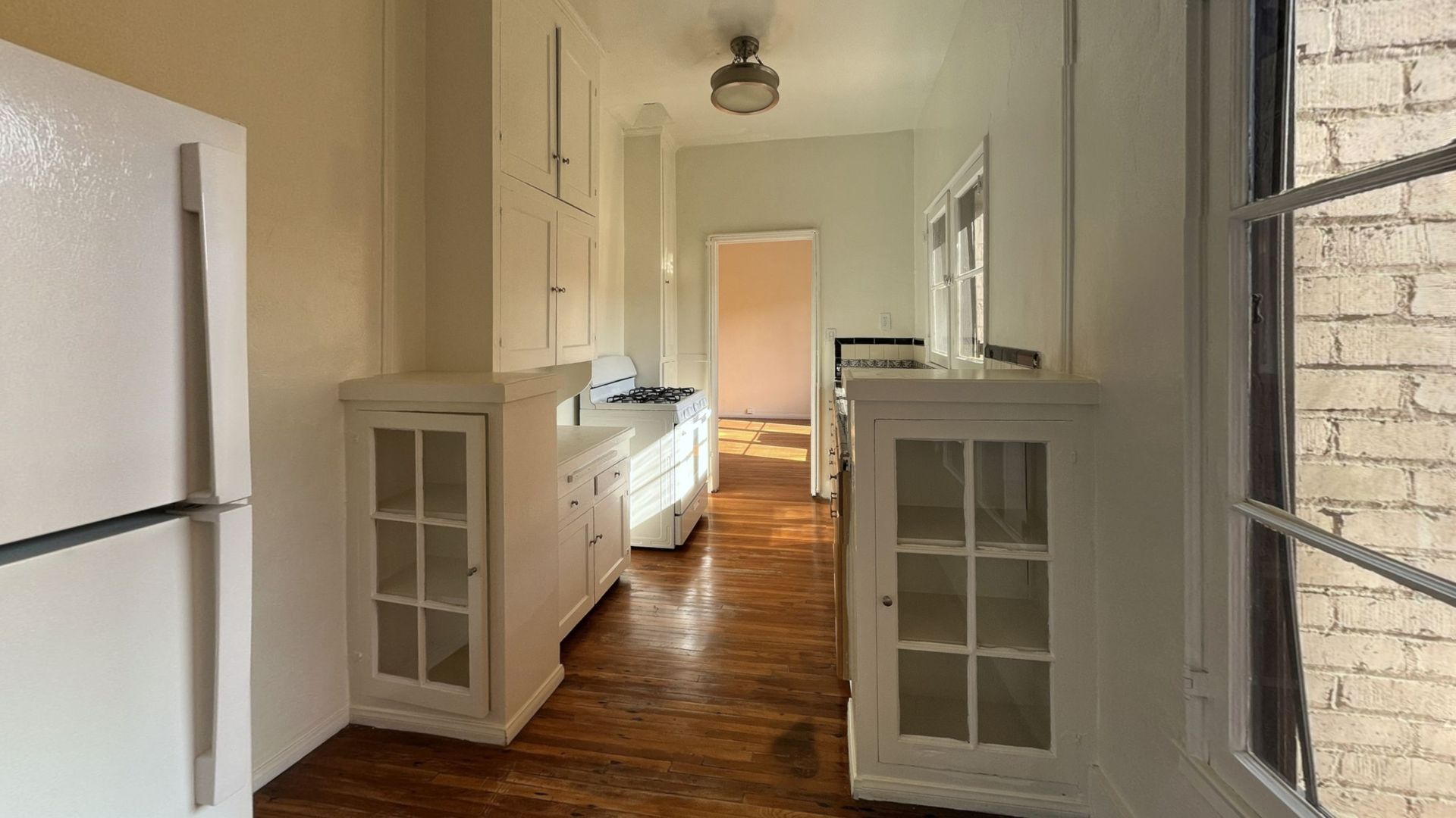 This cute and cozy space has everything you need. Original hardwood floors throughout the living room bring warmth to this home while a fresh coat of white paint and tons of windows have really brightened up the space.
