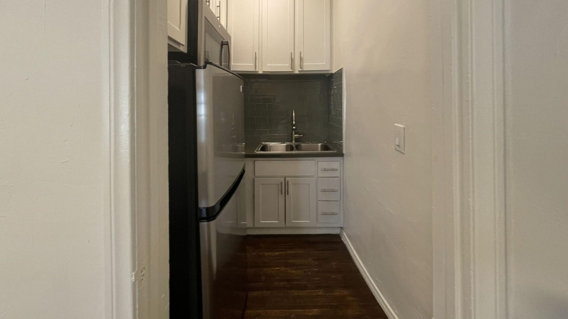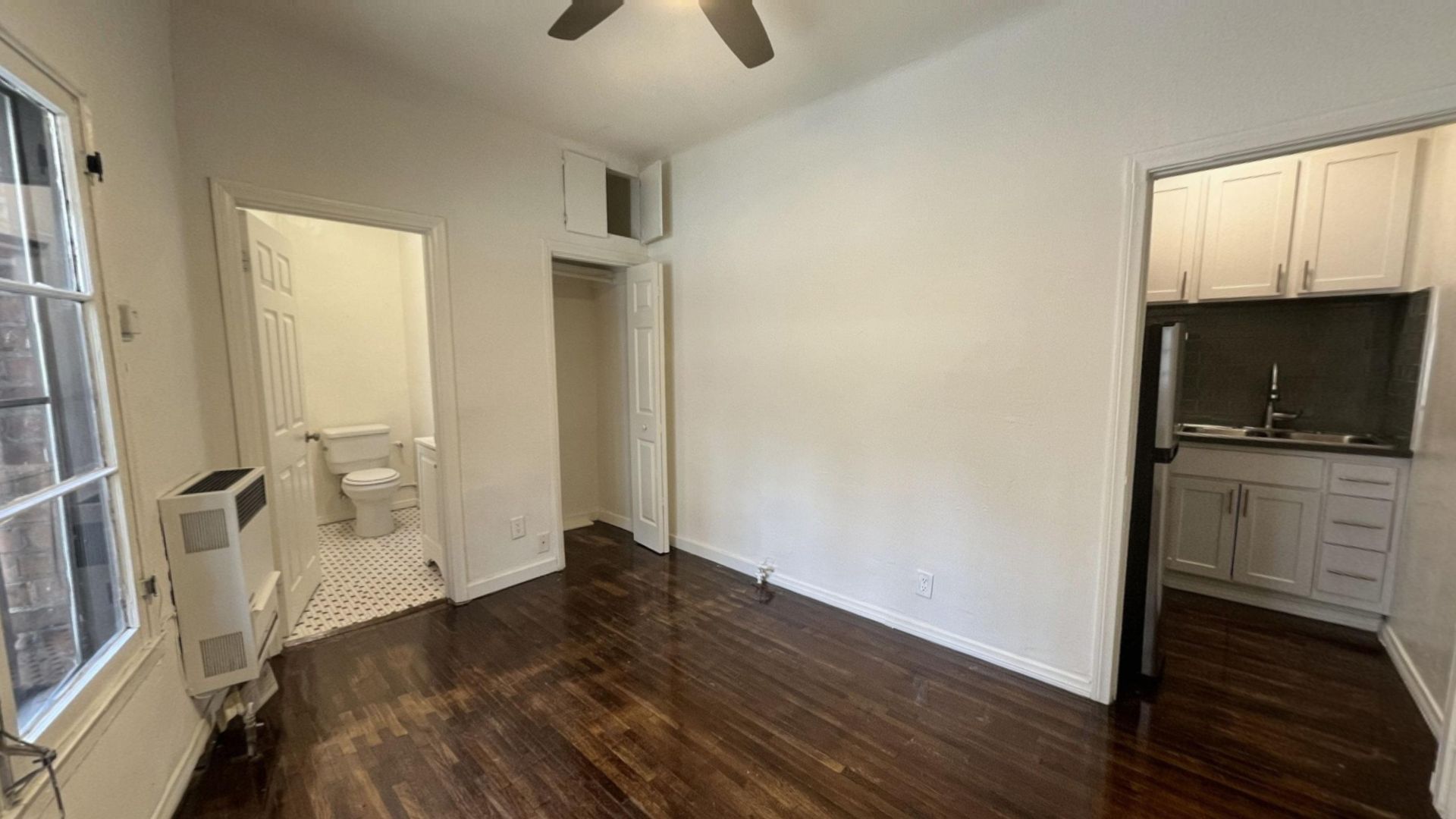 This cute and cozy space has everything you need. Original hardwood floors throughout the living room bring warmth to this home while a fresh coat of white paint and tons of windows have really brightened up the space.