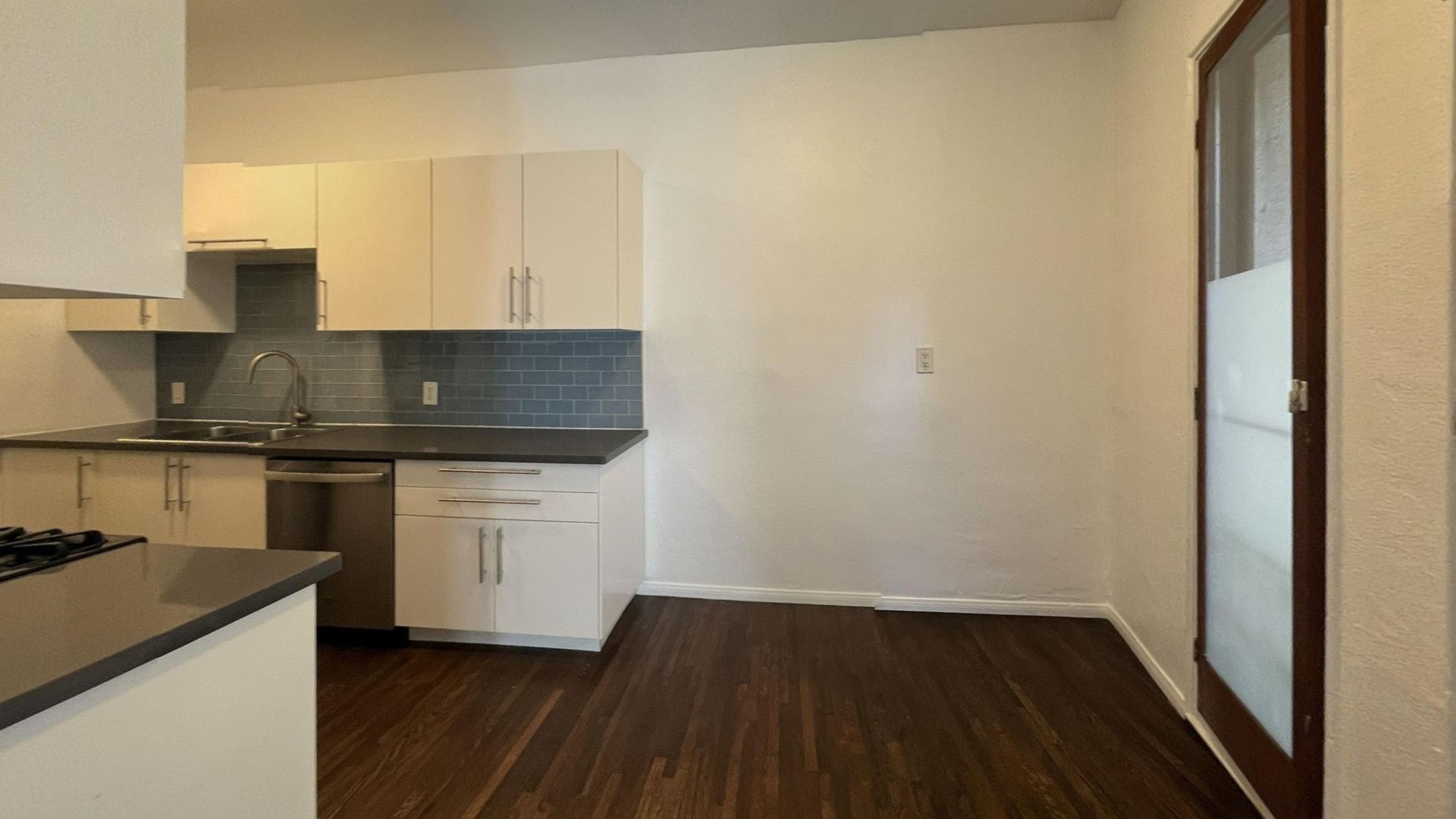 The eat-in kitchen has ample cabinet space and modern updates. All appliances are included.